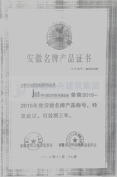 熱烈祝賀“竣捷”牌保溫材料榮獲安徽名牌產(chǎn)品榮譽稱號